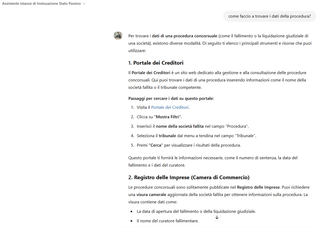 Nota: Durante le conversazioni puoi richiamare rapidamente qualsiasi altro GPT utilizzando @nome_agente. Ad esempio, mentre stai lavorando con il Consulente Normativo CCII e desideri un supporto per un'insinuazione al passivo, puoi semplicemente digitare @Assistente Insinuazione Stato Passivo.