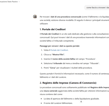 Se non sei un esperto ed hai bisogno di sapere come ottenere i dati della procedura, puoi chiedere al Gpt's come fare: